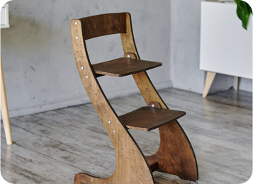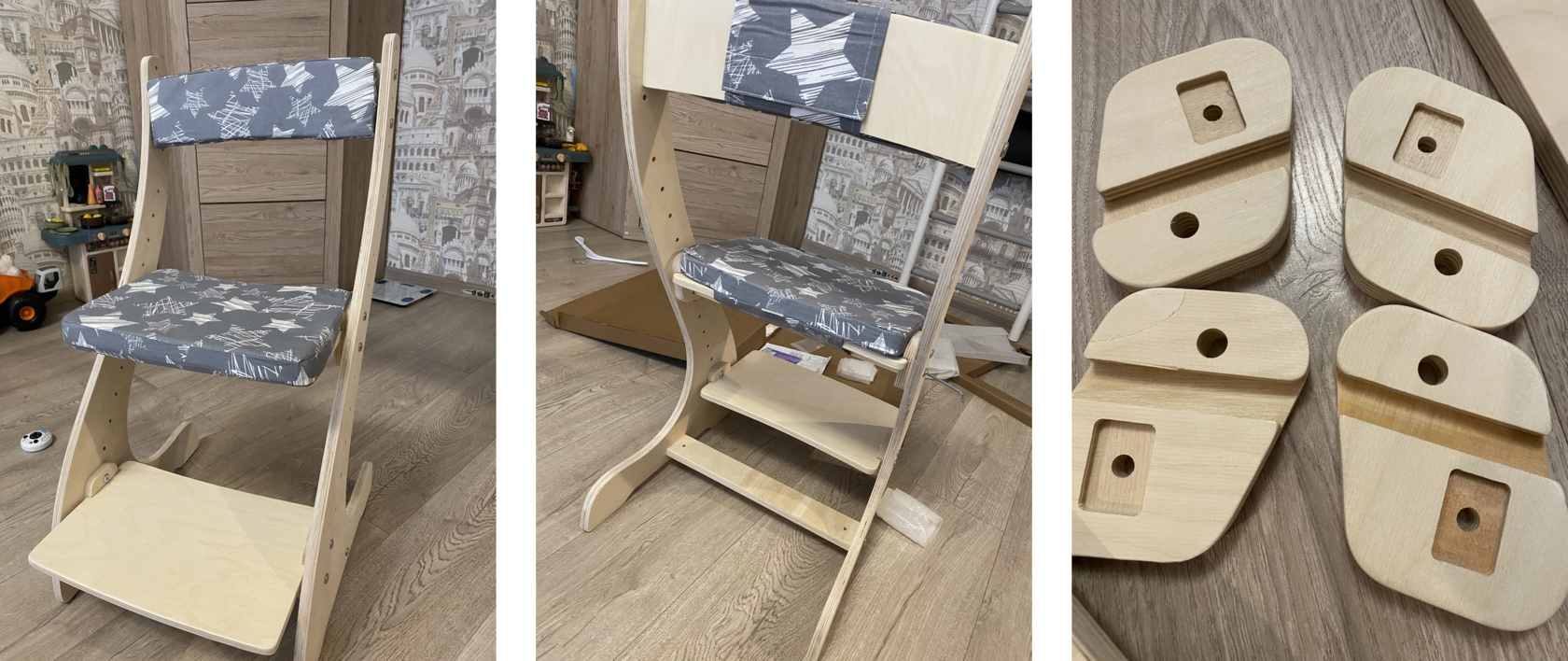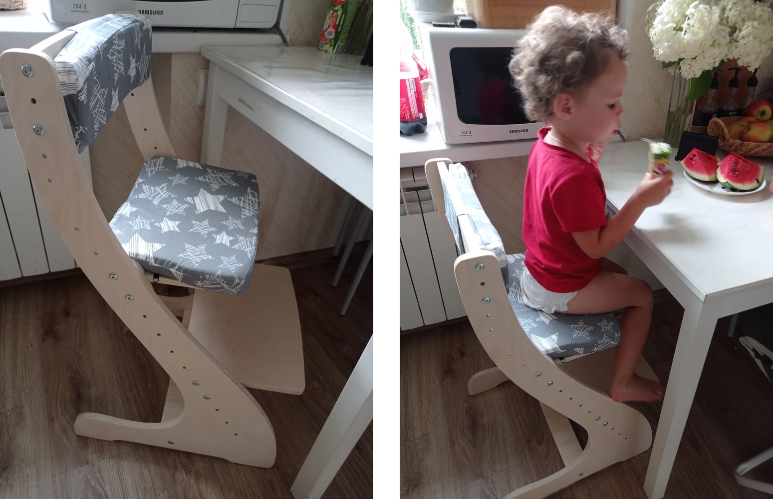 Хороший стульчик !Гладкий ,без всяких заусенцев !Ребенок сидит с удовольствием, спинка ровная! купили для 3-лет