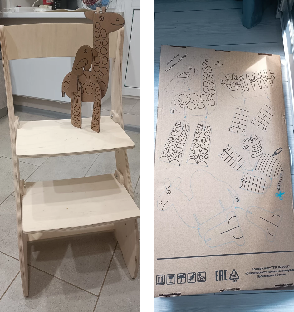 Классный стульчик. Ребёнку "зашло" сразу, теперь только на нём хочет сидеть. Упаковка очень компактная, ничего лишнего. Когда шла забирать, думала будет огромная коробка и я не донесу. Увидев коробку была приятно удивлена. Сборка лёгкая, всех деталей хватило, даже лишние остались. Человеку, который придумал дальнейшее использование картона вообще отдельное спасибо. Только позитивные эмоции от покупки данного стула.
